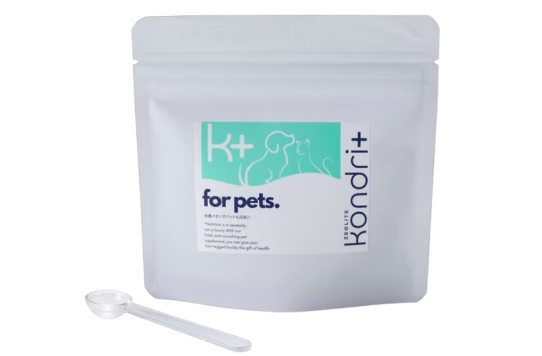 コンドリプラスペットは、ペット向けに開発された天然ゼオライト配合のDセラミ ックス(焼成牡蠣殻)を主成分としたペット用食品です。体重5kgあたり1日0.8g(添付スプーン1杯分)を目安としてご使用下さい。