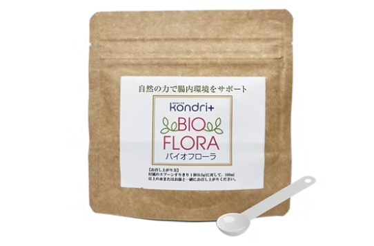 コンドリバイオフローラは、天然ゼオライト配合のDセラミックス(焼成牡蠣殻)を主成分とし、土壌菌と食物繊維を配合した加工食品です。